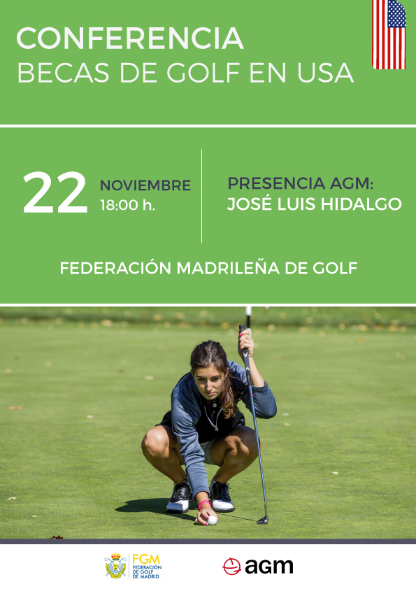 El próximo 22 de noviembre el equipo de AGM Sports acudirá a las instalaciones de la Federación de Golf de Madrid, para presentar una conferencia dirigida a los padres, estudiantes y deportistas que quieran continuar con su formación académica y deportiva en Universidades de Estados Unidos.